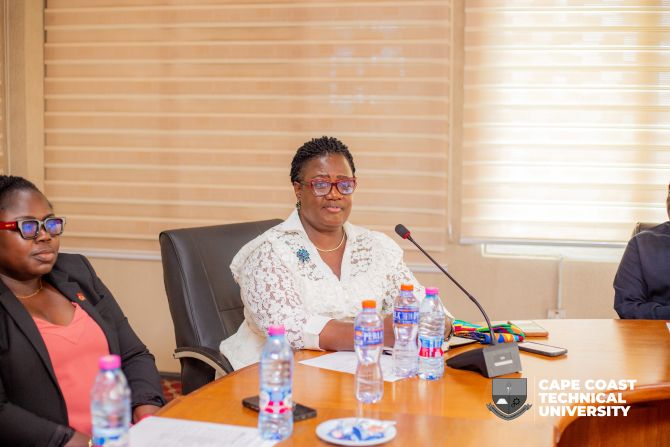 It was a humbling moment for the Management and Staff of Cape Coast Technical University (CCTU) when Her Excellency (H.E.) Prof. Dora Francisca Edu-Buandoh, Ghana’s High Commissioner to Canada, paid a courtesy call on the University in the cosy noon hours of Tuesday, October 7, 2025, at the University’s Council Chamber. The visit was to share reflections on her new diplomatic assignment and explore potential avenues for collaboration between the University and relevant institutions in Canada.