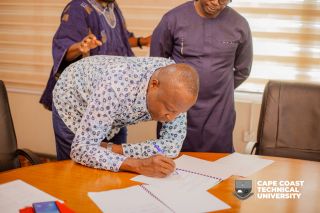 On Friday, November 14, 2025, the Executive Secretary of G-Hub Foundation, Mr. Isaac Awua-Boateng, signed an MoU with CCTU at a brief ceremony held at the University’s Council Chamber and donated equipment worth Seventy Thousand Ghana cedis (Ghâľ70,000) to the University’s Engineering Design and Innovation Centre (EDIC).