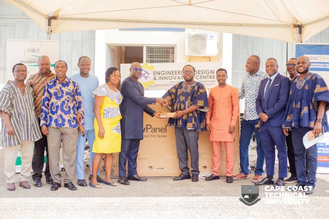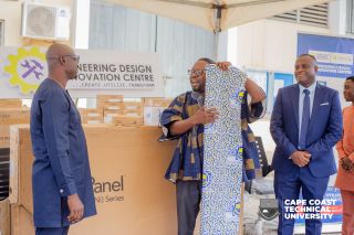 The Acting Pro Vice-Chancellor of CCTU, Prof. Emmanuel Kwaw, received the donated items on behalf of the University and subsequently handed them over to Dr. Kwame Anane-Fenin, Director of the Engineering Design and Innovation Centre (EDIC).