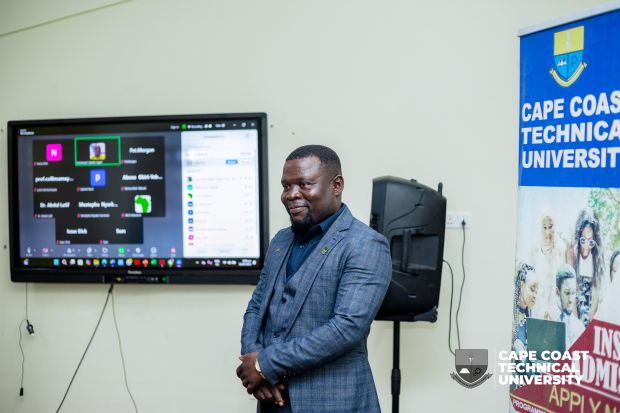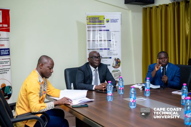 The Cape Coast Technical University's (CCTU) School of Graduate Studies and Research (SGSR) held its first-ever Viva Voce on July 31, 2025, at the Ghana Skills Development Fund (GSDF) Audio-visual Laboratory, CCTU, where the first batch of Master of Technology (Civil Engineering) postgraduate students defended their theses before a panel of examiners. The event was attended by the Vice-Chancellor, Prof. Kwaku Adutwum Ayim Boakye, the Dean of SGSR, Prof. Emmanuel Bamfo-Agyei and over twenty (20) onsite and thirteen (13) online participants.