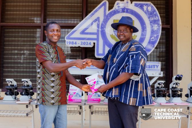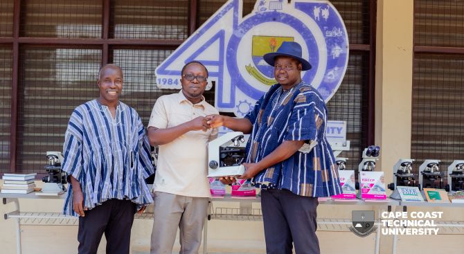 The Department of Food Science and Postharvest Technology under School of Applied Sciences and Technology (SAST), Cape Coast Technical University (CCTU) has received essential new laboratory equipment, including fourteen (14) high-quality microscopes and books, from Dr. Daniel Annan of Manchester Metropolitan University in the UK.